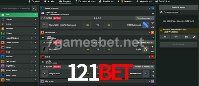 O 121bet oferece uma grande seleção de opções de apostas em e-sports com probabilidades competitivas